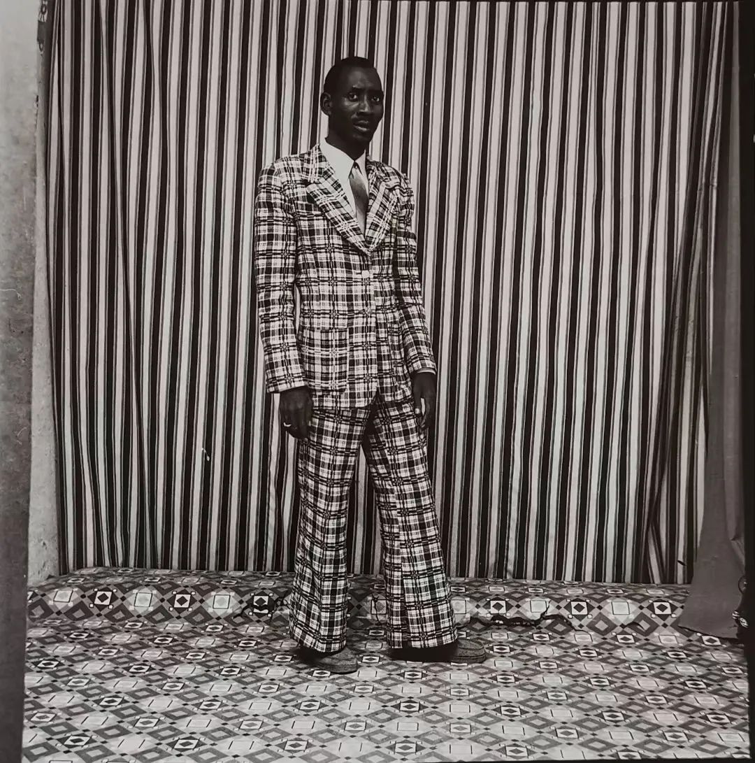 【学习笔记】马里摄影师马利克•西迪贝在农村长大,祖祖辈辈耕地放牧,过着简单而远离尘世的生活。1955有着极高的艺术与绘画天天份的他,成为一间摄影工作室的学徒,第二年拥有了自己的第一台相机,第三年成为一名全职摄影师,第四年建立了自己的摄影工作室,所拍摄的人物都衣着光鲜,不同寻常,完全打破了刻板印象中饱受饥荒困扰、绝望而无助的非洲印象。在这幅引人注目的人像作品中,背景中不断重复的图案与男士的西装形成了令人眼花缭乱的对比效果。运用这一效果,西迪贝在摄影棚中营造出不同寻常的、极具表演性的空间。他认为,摄影师的审美能力必须与被摄对象的情感相结合,才能成为称职的摄影师。同时要具备观察力,也要明确自己想要什么?对待被摄对象一定要友好,与他们产生共鸣,一定要让被摄对象放松下来,这极其重要。(1978年)