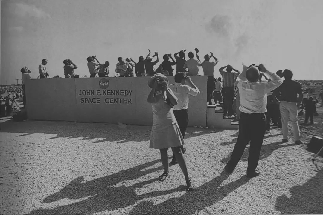 【学习笔记】美国摄影师加里•维诺格兰德的这幅充满智慧的影像记录了1969年一群正在观看阿波罗11号发射的观众。维诺格兰德取景角度通常是去框取场景的水平元素,使用垂直边缘做参考,就不会造成倾斜,在利用场景中的线条组建画面时,不要直直地横穿或上下构图,可注意对角线构图。(1969年)