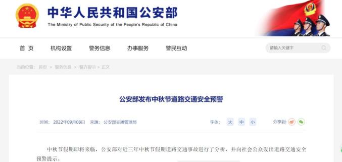 中秋节道路交通安全预警