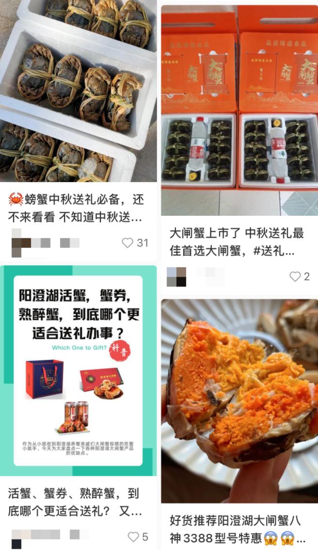 在社交平台上,大闸蟹与中秋送礼挂钩