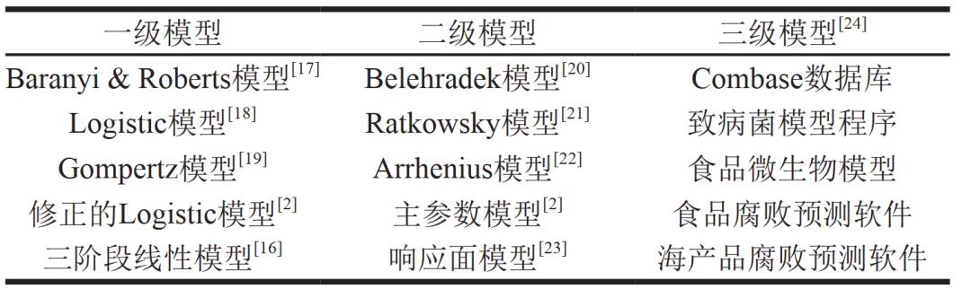 目前,预测食品预测微生物学(Predictive Food Microbiology)使用数学模型、统计学、应用计算机等方法描述微生物的生长过程,一般分三级模型。一级模型用来表征在一定生长环境和条件下微生物数量与时间的关系;二级模型在一级模型上加入环境因子;三级模型则将一级、二级模型等多个模型整合为一个软件系统[9]。传统预测微生物学模型构建方法以及食品预测微生物学软件都已经比较完善[10]。