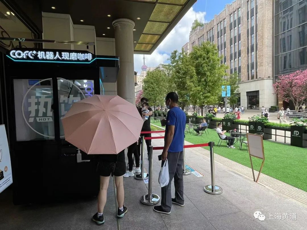 在新世界城和新世界大丸百货门前,全新设立的外摆咖啡,吸引许多消费者现场体验。“虽然步行街上有很多咖啡店,但坐在户外的感受和室内完全不一样。我从南京路新世界城逛到外滩,走到这里时有些累了,坐在步行街上,点一杯咖啡看看往来游人,有种‘你站在桥上看风景, 看风景的人在楼上看你’的意境,非常特别。”