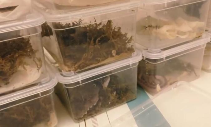 “养殖点在33楼,我们当时在他家里都搜了一遍,按照他的说法,跑掉的蛇是他把孵化出来的蛇放在一个塑料盒里,扣上了扣子,但蛇从缝隙里跑出去了,他不确定跑了几条。按养殖者的说法,幼蛇无毒,小的眼镜蛇有些毒性。”