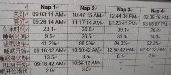 结果提示五次小睡试验中