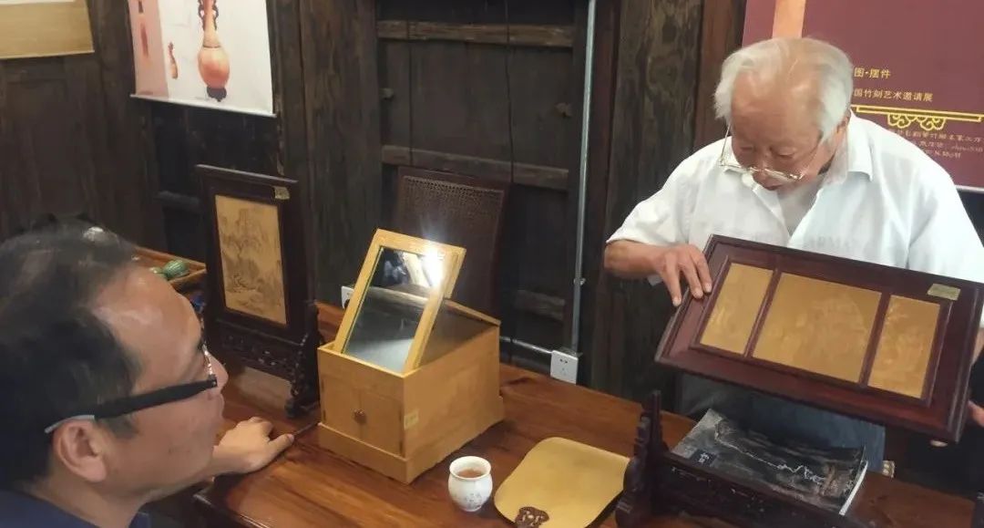 启松翻簧竹雕名家工作室设有展示区、体验区和宣教区。工作室由国家级非遗代表性传承人罗启松及儿子罗文弛(黄岩区级非遗代表性传承人)组织讲解,指导游客体验活动。隔壁,还有周望安工作室的黄岩漆金木雕体验。