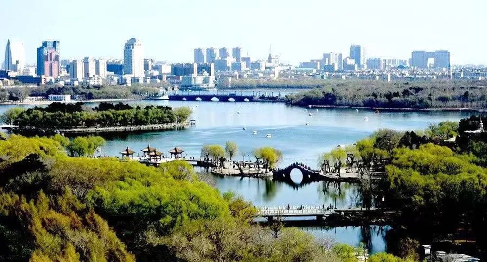 公园内湖水清澈,曲桥亭榭,鸟语花香,不是江南胜似江南。各种回桥亭阁与湖光林色相映成韵,令人流连忘返。