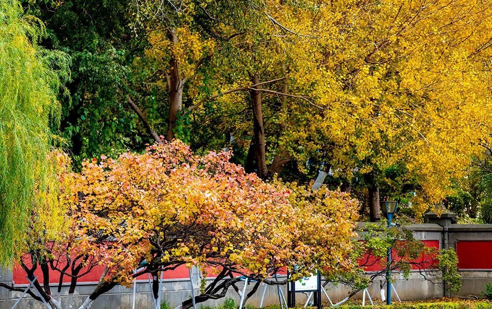 这里的秋景别有一番静谧之美,金灿灿的树叶与安静矗立的红墙、充满历史感的琉璃瓦构成了一幅绝美的画面,令人怦然心动。