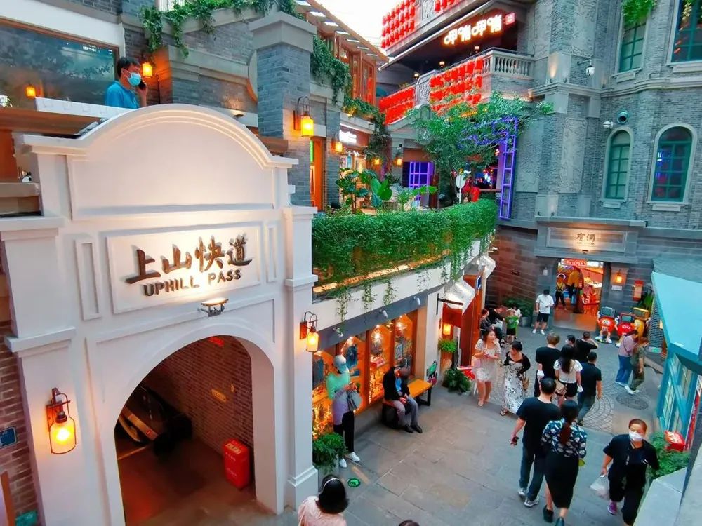 此山非彼山,游客们徘徊在山中拾阶而上,拜访亭台、探寻楼阁、品尝美食,这街市仿佛一处都市中的世外“桃花源”。