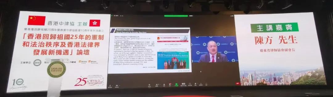 2022年9月9日下午,由香港中律协主办,广州仲裁委员会协办的“香港回归祖国25年的宪制和法治秩序及香港法律界发展新机遇”论坛成功举行。本次论坛采用“现场+线上”形式,在香港设立主会场,并开通线上直播,参会人数超过200人。