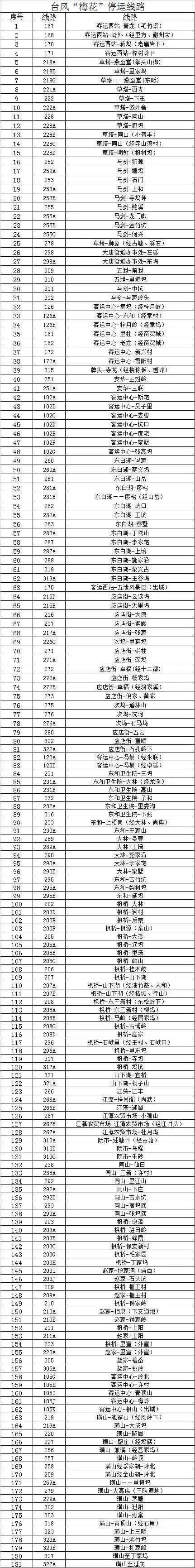 因受台风“梅花”影响,城乡公交部分班线临时停运(具体线路见附表),恢复时间视天气变化情况另行公告。
