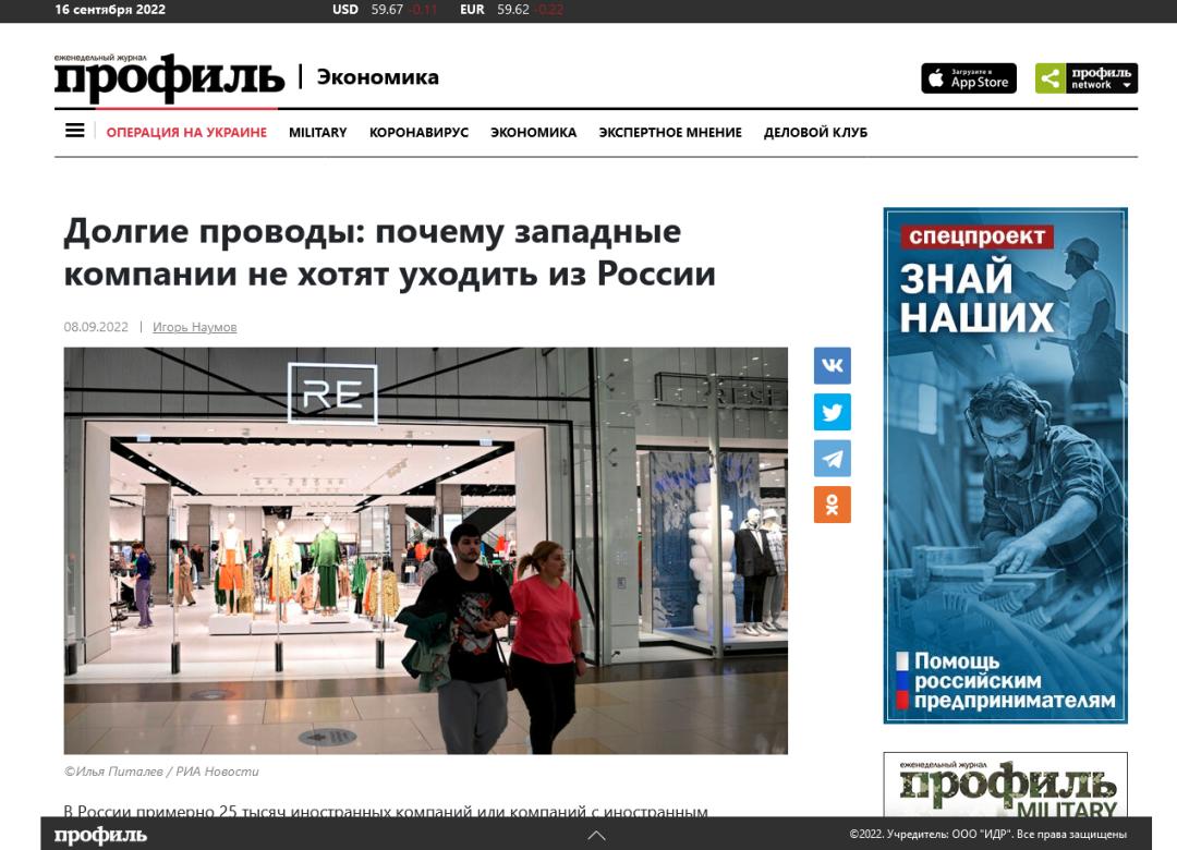 “漫长的告别:为什么西方公司不想离开俄罗斯?”,本文截图来自《侧写》杂志网页有利可图的地方永远不会空虚