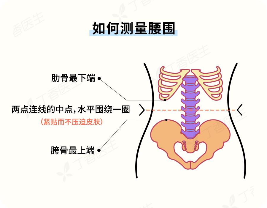 (图源veer)第二种是国际糖尿病联合会严格定义的腰围:肋骨最下端和髂嵴上缘(胯骨最高点)连线的中点的周长。