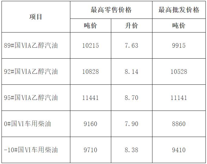 据安徽省发改委发布油价调整公告,89号汽油最高零售价降至7.63元/升,92号汽油最高零售价降至8.14元/升,95号汽油最高零售价降至8.70元/升。