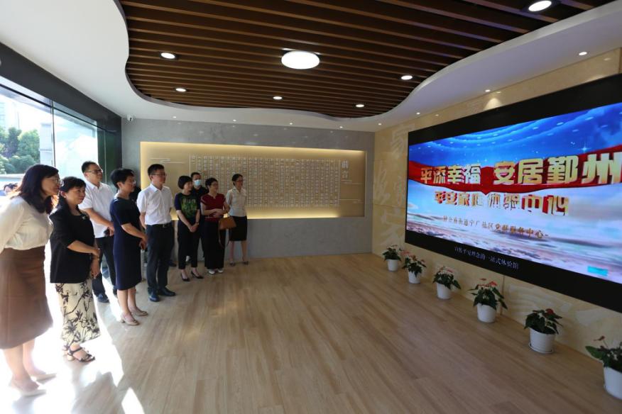 俞泉云一行来到宁广社区平安家庭体验中心,先后参观了钟公庙街道家庭教育指导服务所、宁广社区妇女儿童综合服务驿站、社区全域化治理指挥中心,对鄞州区家庭教育、妇儿驿站和平安家庭的创建成果、特色亮点表示了充分肯定。她指出,妇联要发挥组织优势主动融入社区社会治理工作,展现妇联辨识度,为城市发展与社会治理现代化贡献巾帼力量。