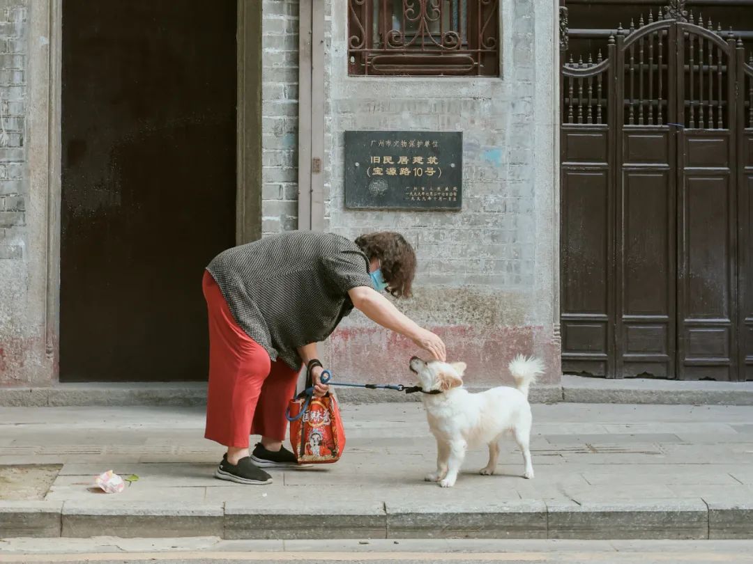 宠物对老年群体的意义是什么?这是我经常思考的问题。某次在荔湾西关闲逛时,一位老奶奶撑着略显臃肿的膝盖,轻轻抚摸小狗的头,瞬间温柔充盈内心,不自觉地,手中的相机记录下这一幕。