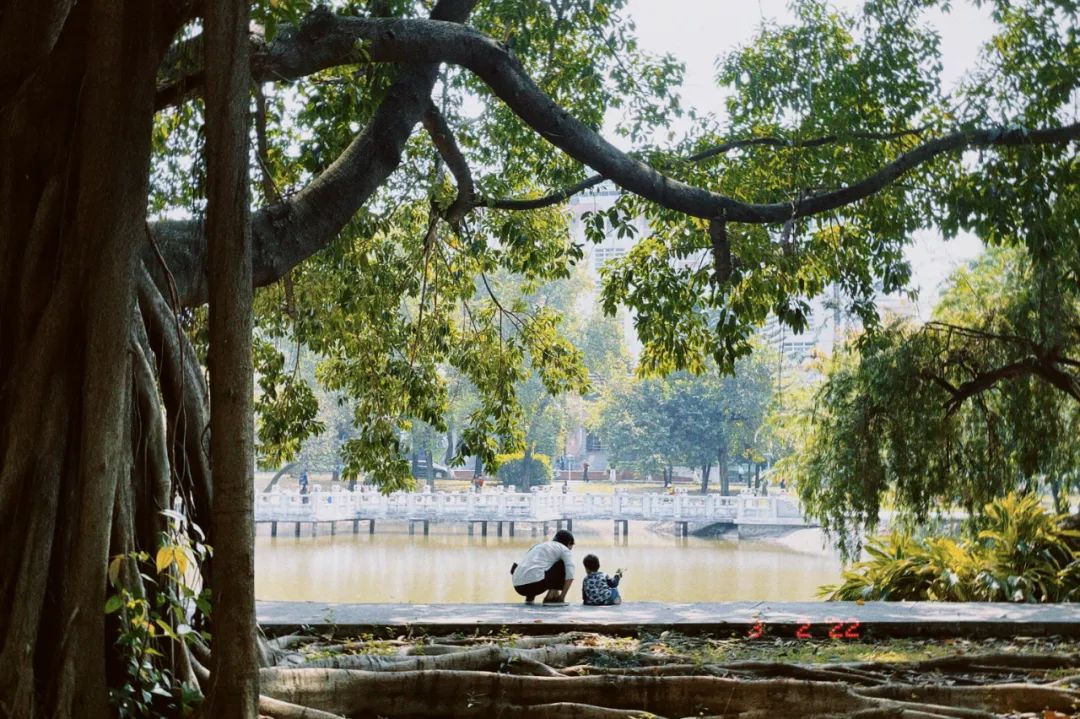 在广州的春天,走在校园里,瞥见一位妈妈带着孩子在湖边,或许是与孩子一同观察着湖水,或许是给孩子讲大树的故事,也或许是孩子赖着不愿意走,妈妈只得蹲下来陪着。这份温暖我们不得而知。她们身后的大树,早已布满年轮,孩子终会长大、妈妈也会老去,到那时,你是否也愿意耐心地蹲下来,陪着她,任凭云卷云舒,不觉倦怠。