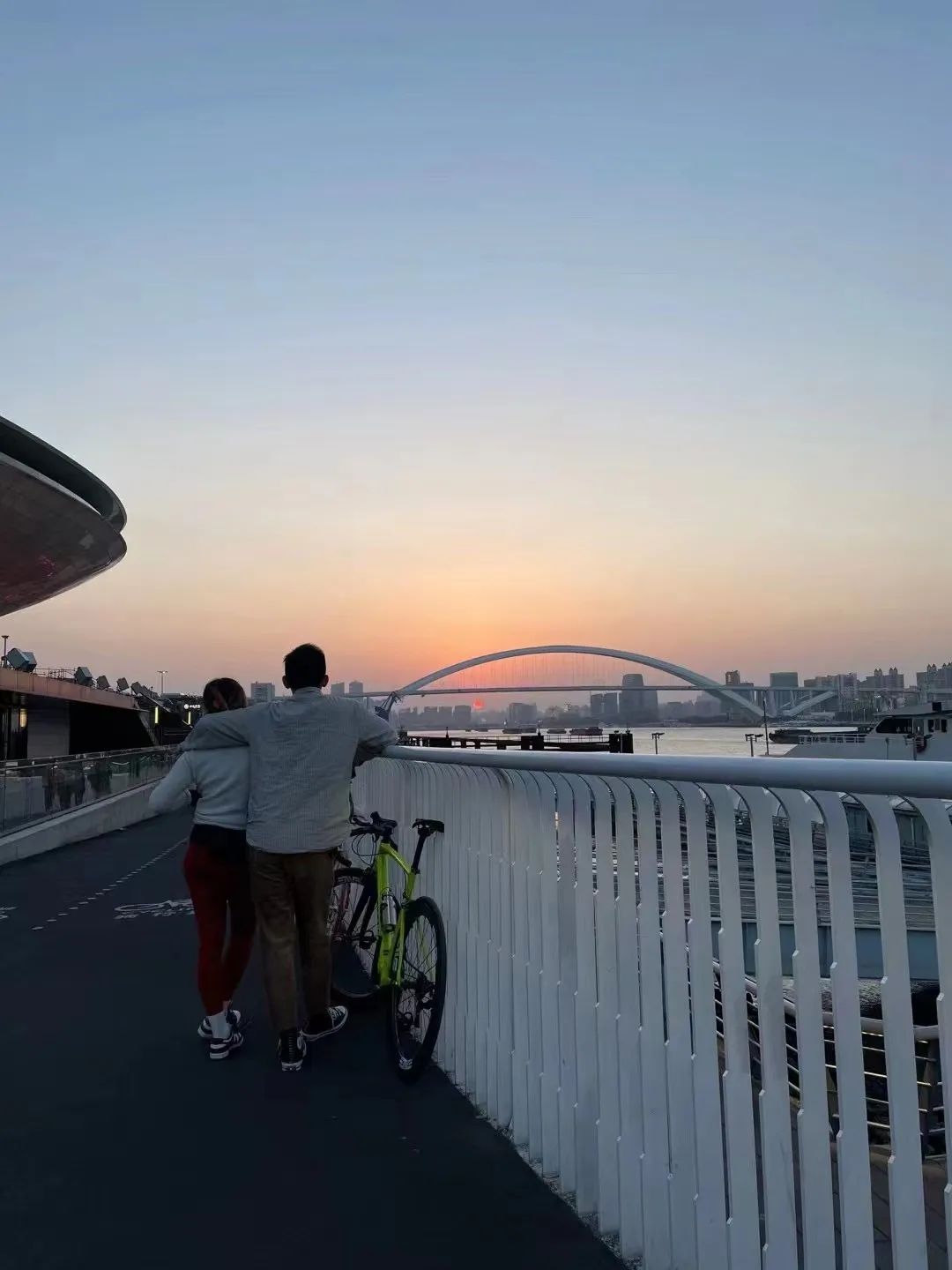 在人来人往的滨江,偶遇了这一幕美好。突然体会到了那句话的浪漫:“世界变化不停,人潮川流不息,我只想每个落日,身边都有你。”