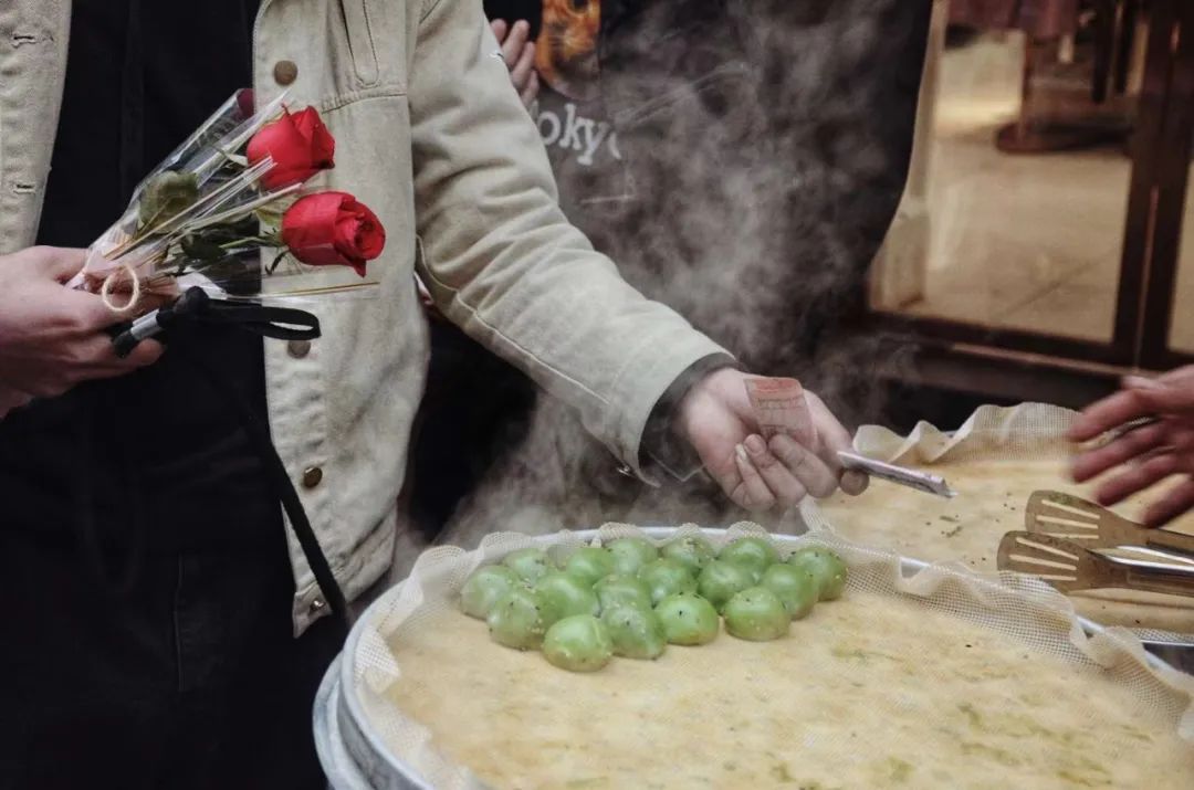 在一个普通的日子,有位先生拎着他爱人的包,买了两支玫瑰和一袋青团,度过了对于他们而言很特别的一天。