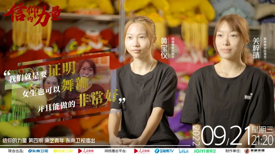 黄宝仪、关梓晴,一个95后,一个00后,虽然年龄不大,但舞狮已有十多年,她们是佛山市顺德区唯一一对女性舞狮专业表演组合。