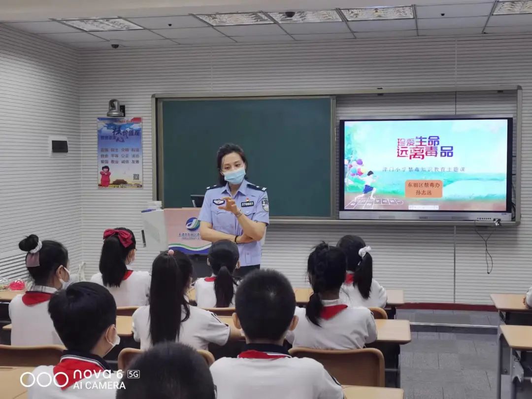 新学期伊始,为不断提升在校学生抵御毒品的能力和参与禁毒的意识,充分发挥学校教育思想引领和社会普法宣教的职能作用。东丽区禁毒办联合区教育综合保障中心、团区委等单位为全区中小学生带来了一堂具有特殊意义的“开学第一课”。