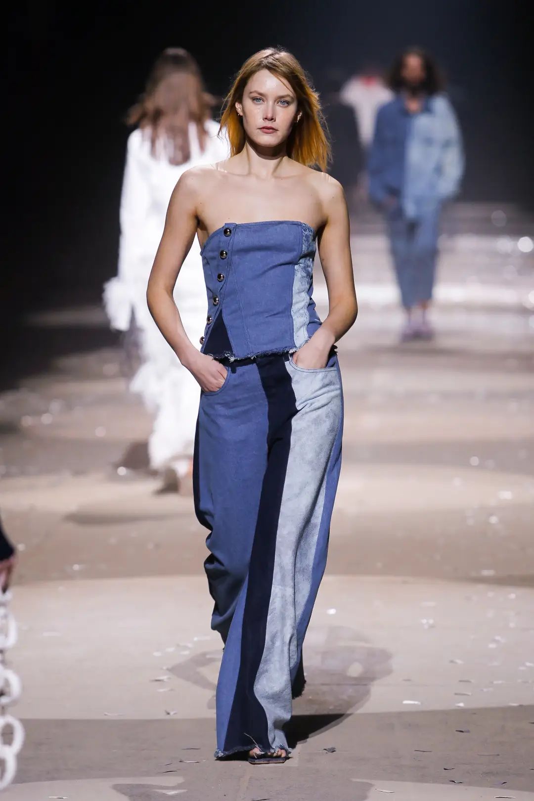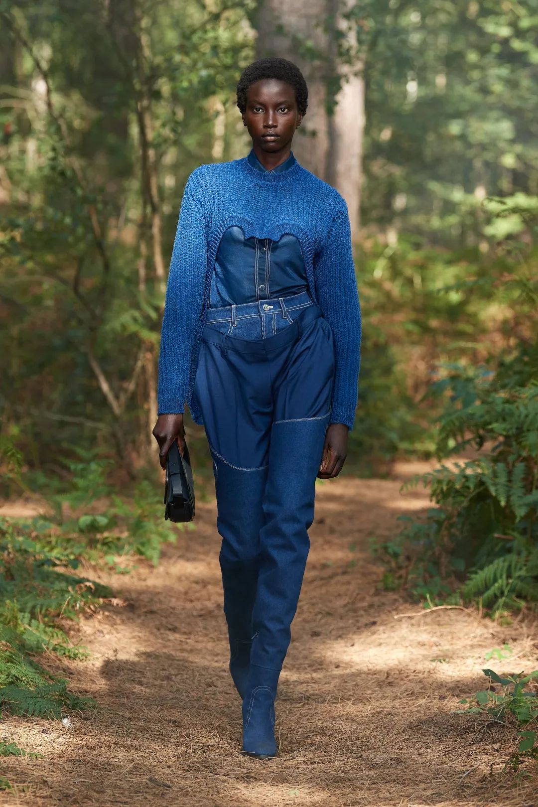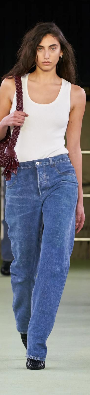 阔腿牛仔裤很适合拿去搭配短一截的上衣,在视觉上拉长头身比,娘Man结合,又A又飒。除了经典的阔腿牛仔裤,今年还有很多设计新颖的款式,在秀场上演绎着各种不同的时尚,喜欢个性大胆的宝贝可以尝试一下哦