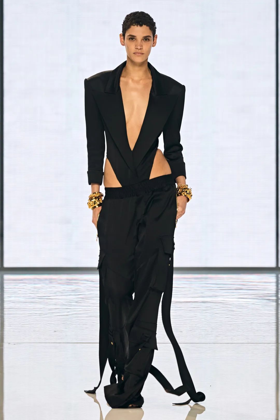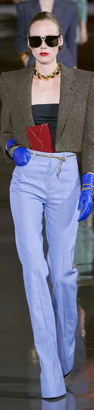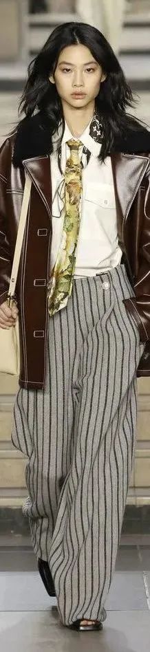 今年秀场上出现的西装裤造型,延续了拖地裤的长度,不过和往年不同的是,裤型稍微“瘦”一点会更时髦!
