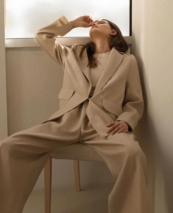 色彩统一、剪裁精致的西装+西装裤配成一套,给人一种精心搭配过的感受,干净利落不说,还贼拉高级。