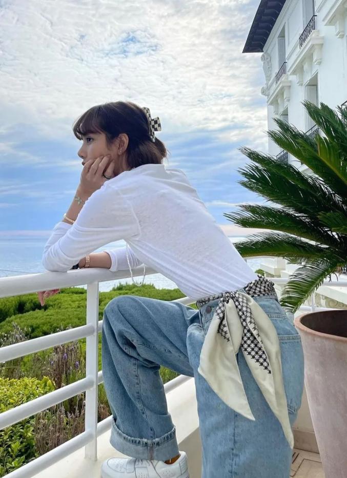 也可以像Lisa这样搭配干净、简约的T恤,与白色的碰撞更有清爽的氛围。
