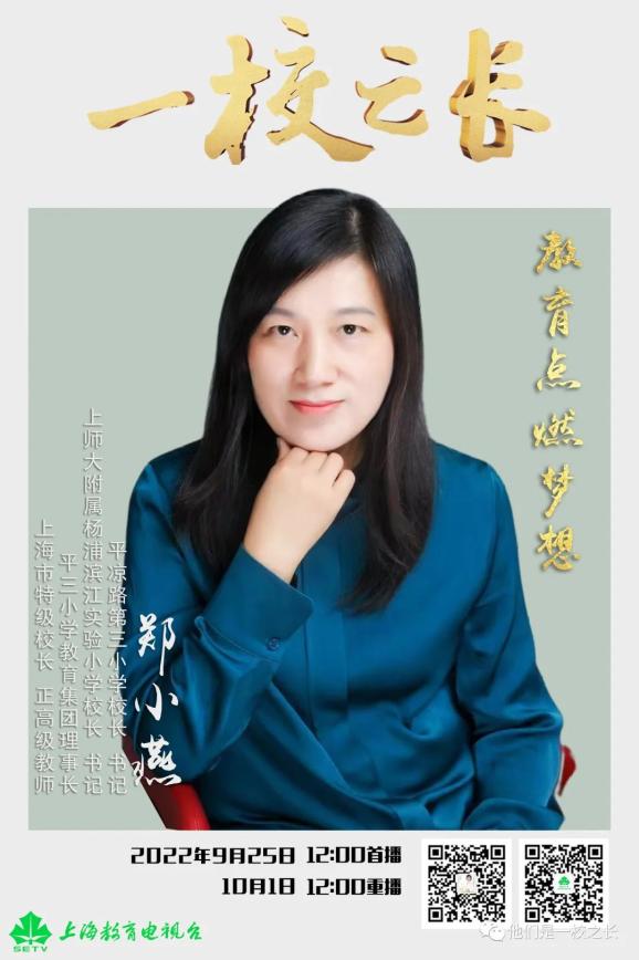 郑小燕平凉路第三小学/上师大附属杨浦滨江实验小学党支部书记、校长,平凉路第三小学教育集团理事长,上海市特级校长,正高级教师。