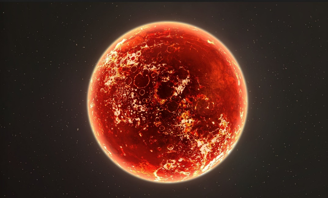 这时期的地球上,“陆地”全部由黑色玄武岩构成,天空由温度高达数百摄氏度乃至上千摄氏度的铅灰色硅酸盐云构成。“海洋”则是红色的流动岩浆。
