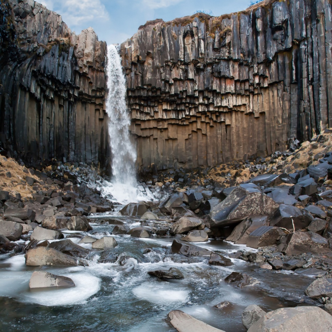 现代在玄武岩石柱间穿行的河流,40亿年前的地球陆地上这种风景可能到处可见,但无一例外,没有任何生命。图片来源:wikicommons