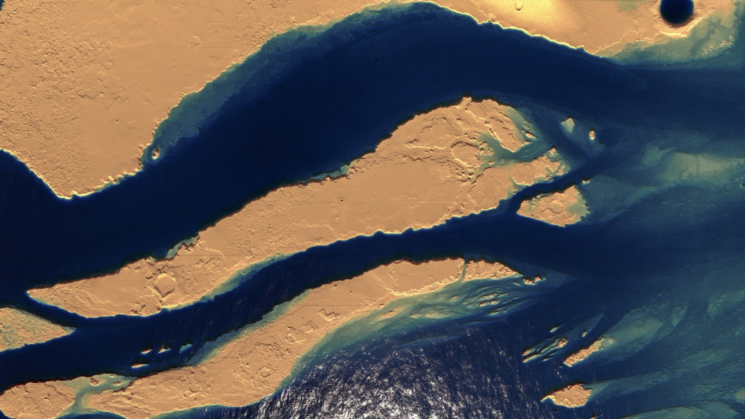 当时陆地上的冰湖和河流可能与此类似。图片来源:ESA-A.Gers