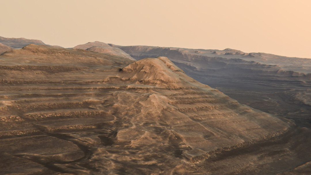科学家对火星上有水时候的想象图。图片来源:NASA