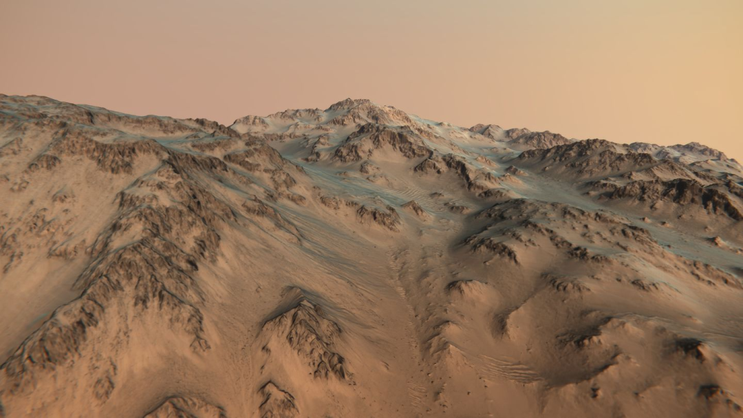 经过长期的河流冲刷和沉积,此时的地表可能已经开始被沉积岩覆盖了,原本大规模的深色色调退去,这时的地表整体可能就是浅色色调了——比如浅黄色之类的。