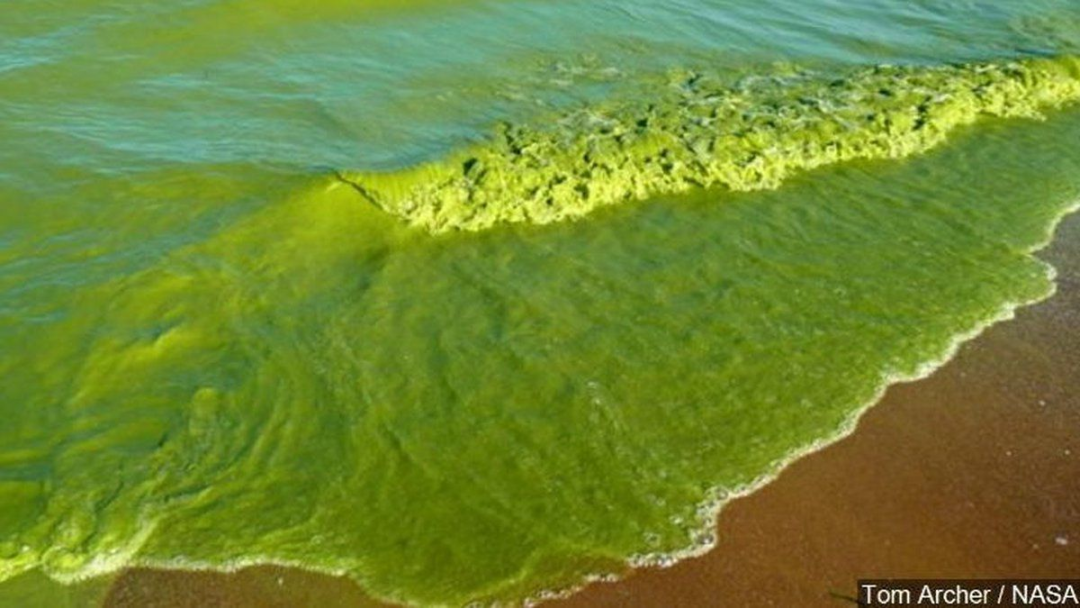 现代海边的风景,从陆地上就能看到海水一片绿。图片来源:NASA