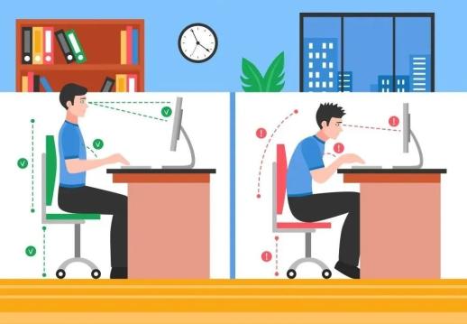 2.抱椅背伸:端坐于办公椅,双脚放松分开与肩同宽,双臂后伸环抱椅背,将臀部紧贴椅背,将胸部缓慢向前挺,感受胸前扩张和后背收缩紧张感,维持10~20秒。缓慢回到初始位,稍停留后依次重复10~15次。