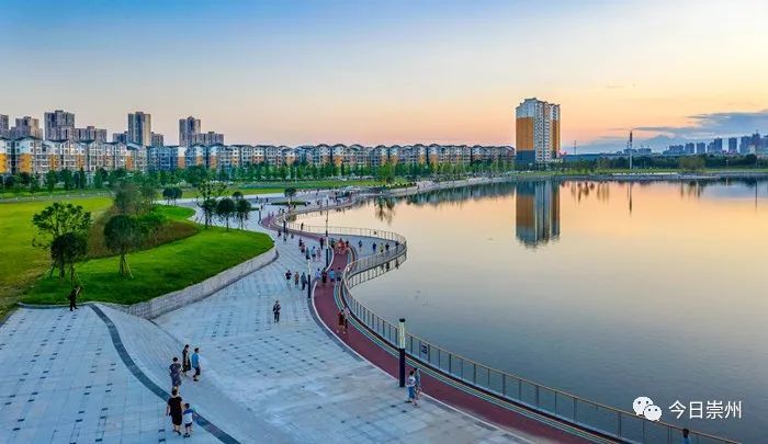 明湖公园就依托这泓静水绿波而建,与不远处的黑石河公园相映成趣。明湖周围,宽敞的广场,碧绿的草坪,天然的湿地,爽目的绿道,齐全的健身设施,与周围的建筑一起,共同形成了崇州这座千年古城东侧的自然生态走廊,构建起一个宜居宜业的产业型公园社区。