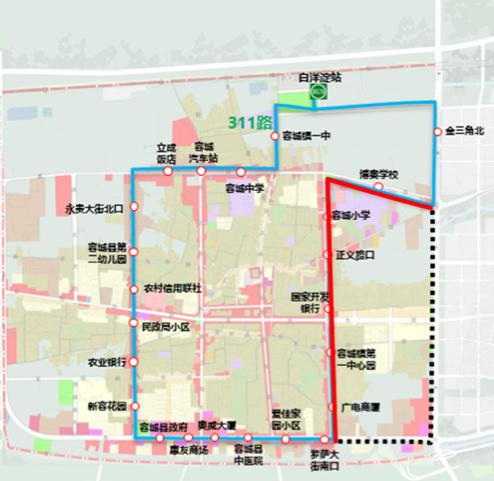增设站位:博奥学校、容城小学、正义路口、国家开发银行、容城镇第一中心园、广电商厦、容城中学。