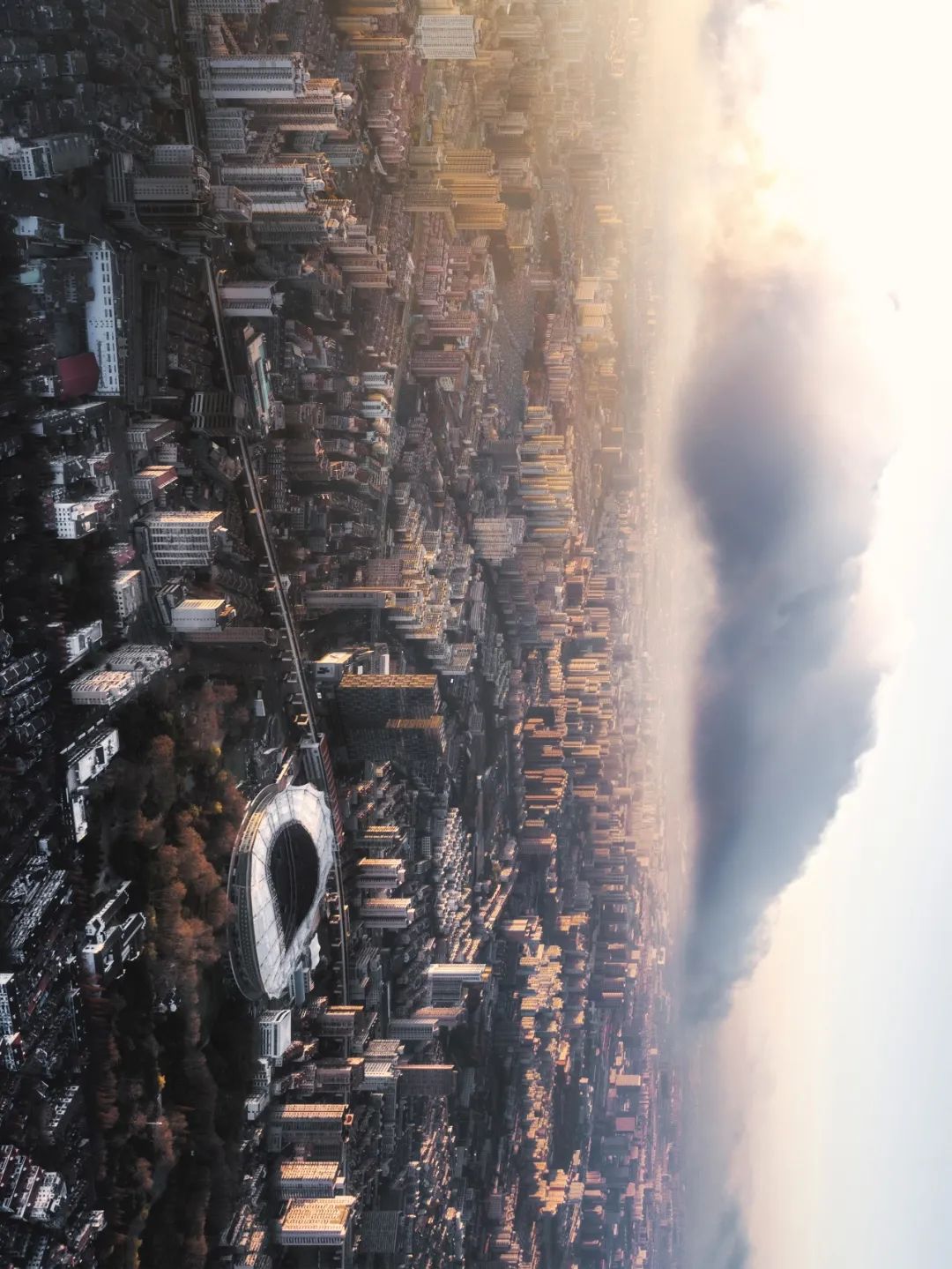 横屏—晨雾中的虹口足球场,像一颗银元宝彰显上海个性