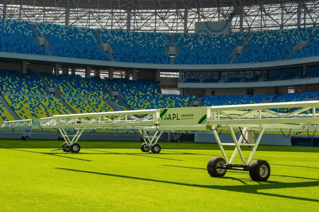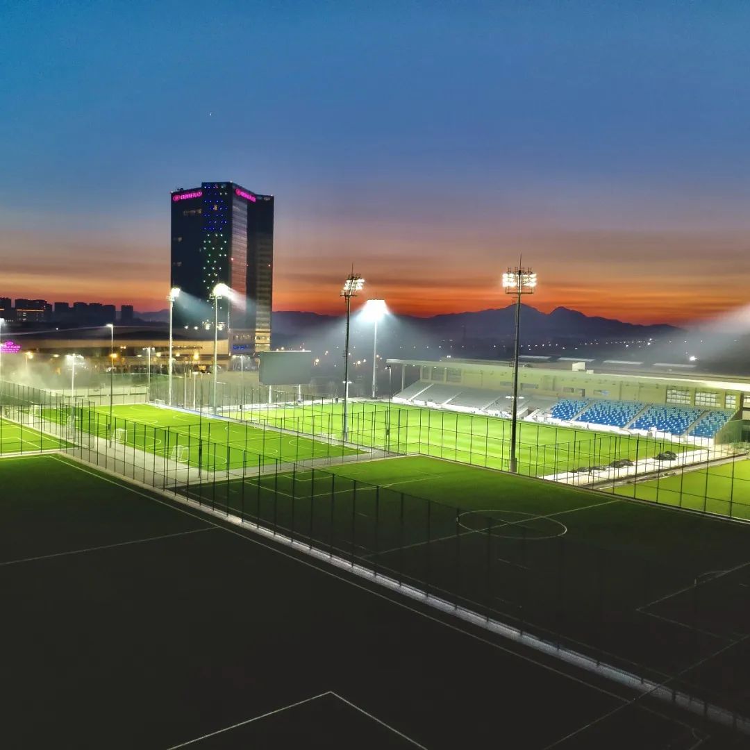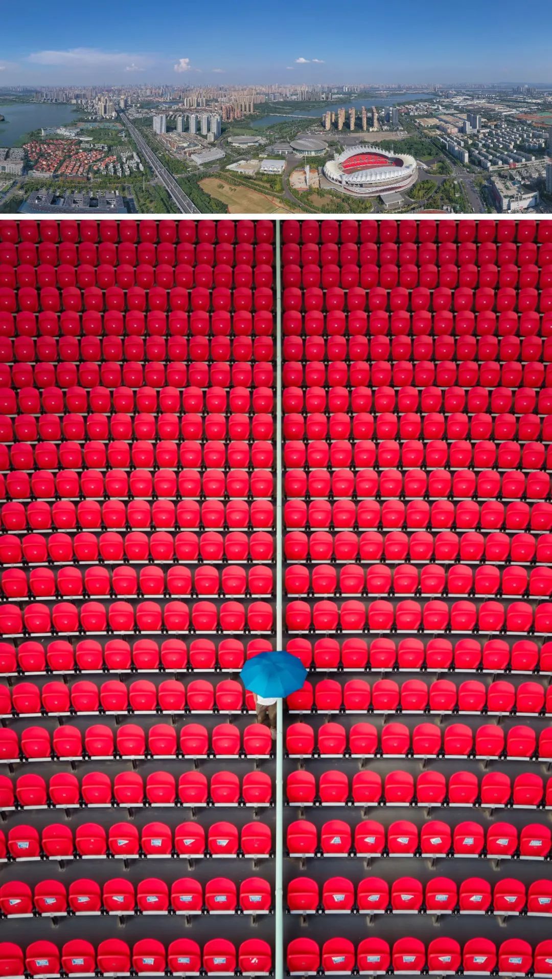 凤凰山体育公园是一座专业足球场,上篮下黄的座椅一直延伸到球场边缘,与球场上的光融为一体,观赛体验拉满。落成后被称为“摄影师的天堂”“体育场馆的颜值天花板”。绿茵场像是迸发着电流的芯片,看起来科技感爆棚