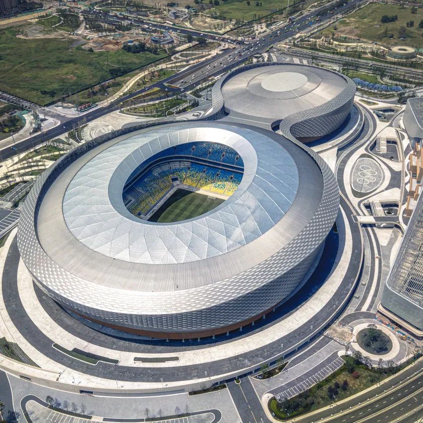 本赛季中超另一支升班马成都蓉城队目前表现也很不错,跻身上半区,他们将来的主场,有可能是凤凰山体育公园。空中俯瞰,凤凰山体育公园犹如一盏巨大的银色“盖碗茶”,6万座次的足球场是“茶碗”,1.8万座次的综合体育馆是“茶盖”。