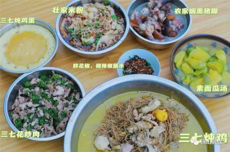 三七根炖鸡、三七花炒瘦肉、三七粉炖鸡蛋、壮家米粉、彝家腊猪脚……一道道美观又养生的三七药膳令人垂涎欲滴,既可以满足味蕾的需要,又可以健康养生。