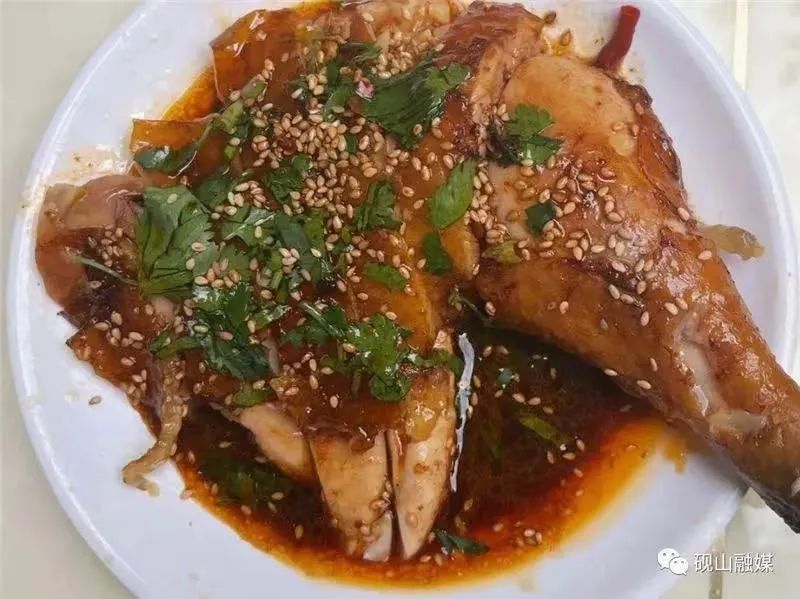 卤水与鸡肉相融,香味浓郁,色泽鲜亮、汁水饱满,鸡肉撒上些许芝麻和香菜,沾上卤汁放入口中,浓浓的肉香便在唇齿之间散溢开来,令人陶醉不已。