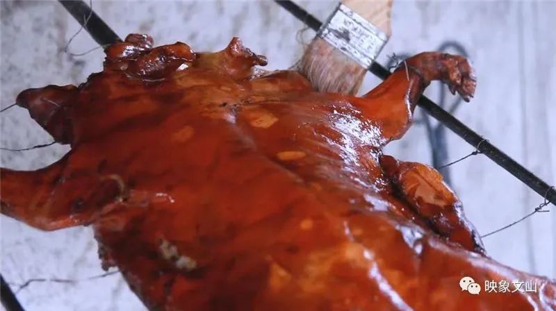 阿猛飘香猪皮薄肉嫩、清香味郁,搭配秘制香料揉搓、炭火慢烤,金黄酥脆、香味沁鼻,令人垂涎欲滴。时光荏苒,岁月不止,飘香猪的美味早已烙印在砚山人的文化记忆里,绽放在了四方食客的舌尖、心上。