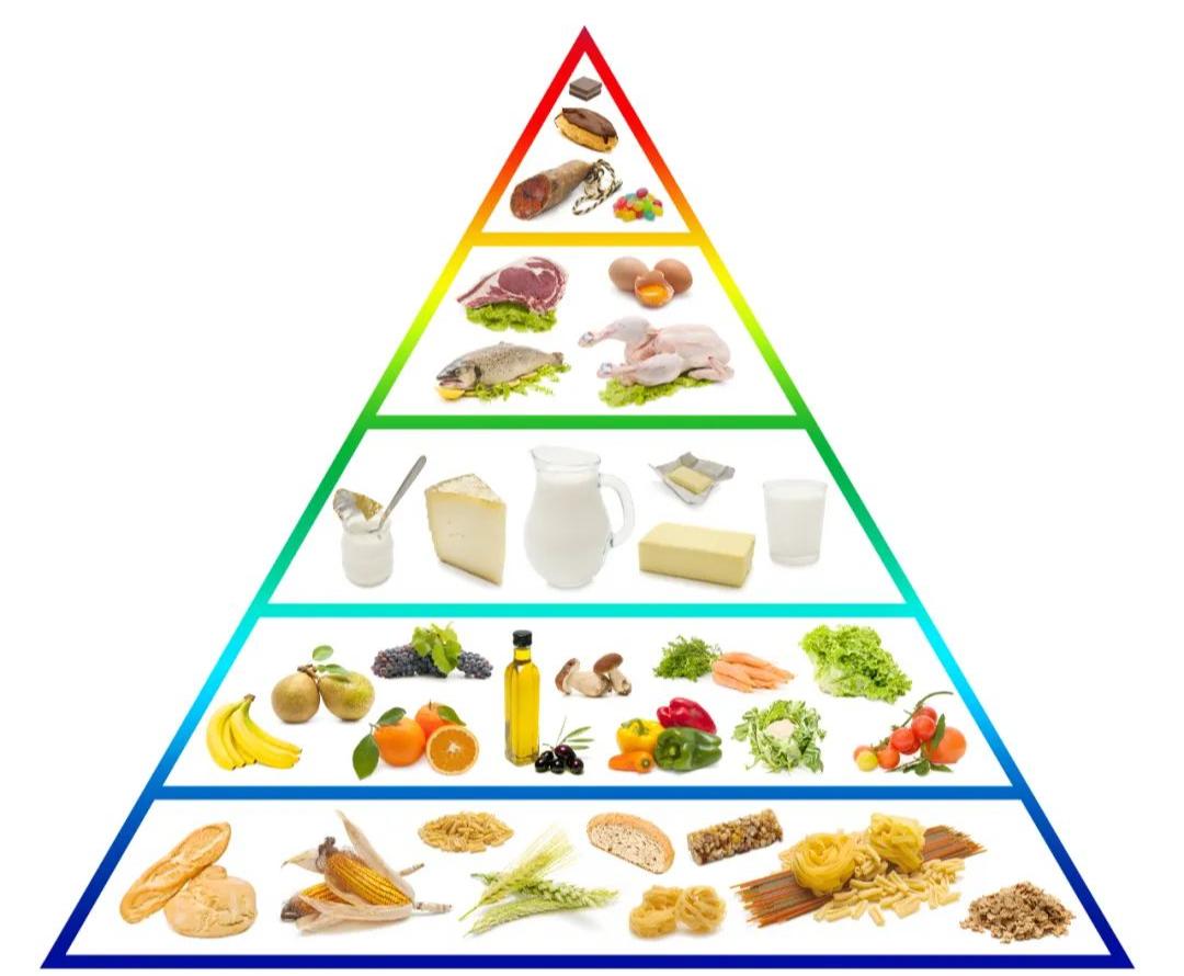 平衡膳食宝塔。/图虫类似的,美国政府发布的2020-2025年度膳食指南中,推荐多食用“营养密集型食物”,也就是那些低脂肪含量的,尽可能少地添加糖、精制淀粉,饱和脂肪和低钠的食物。