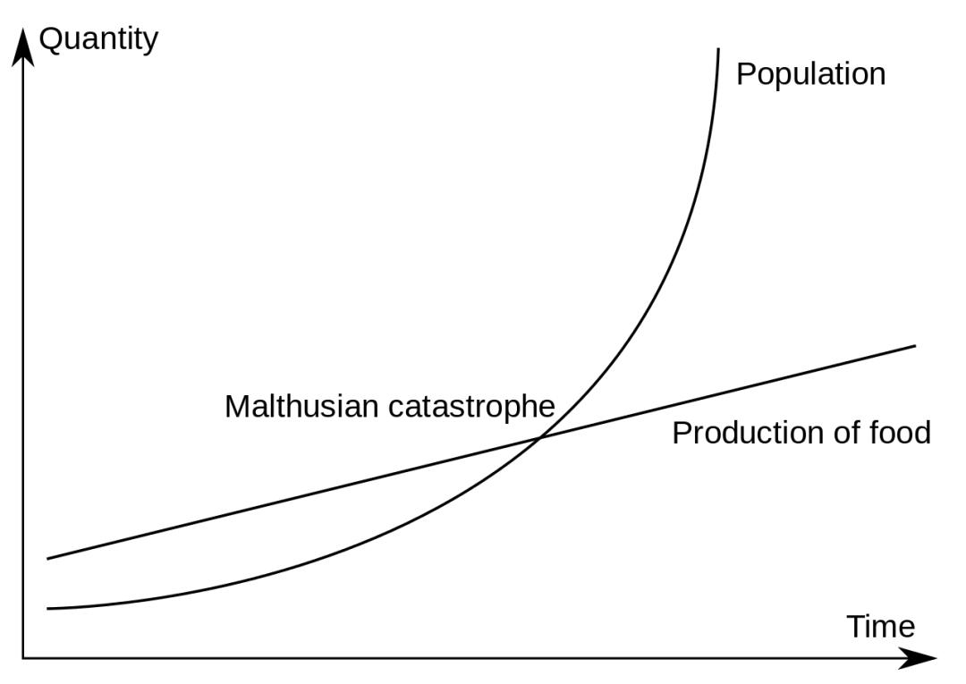 马尔萨斯陷阱。/Wiki当时间来到第二次世界大战后,化学肥料的发明让土地对人口的限制逐渐摆脱。从1960年开始直到现在,平均每过13年,人口就会增长10亿,粮食的供应仍然充足。根据世界粮食计划署的数据,目前地球上生产的食物足以让每一个人都饱腹。