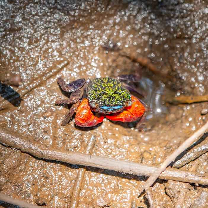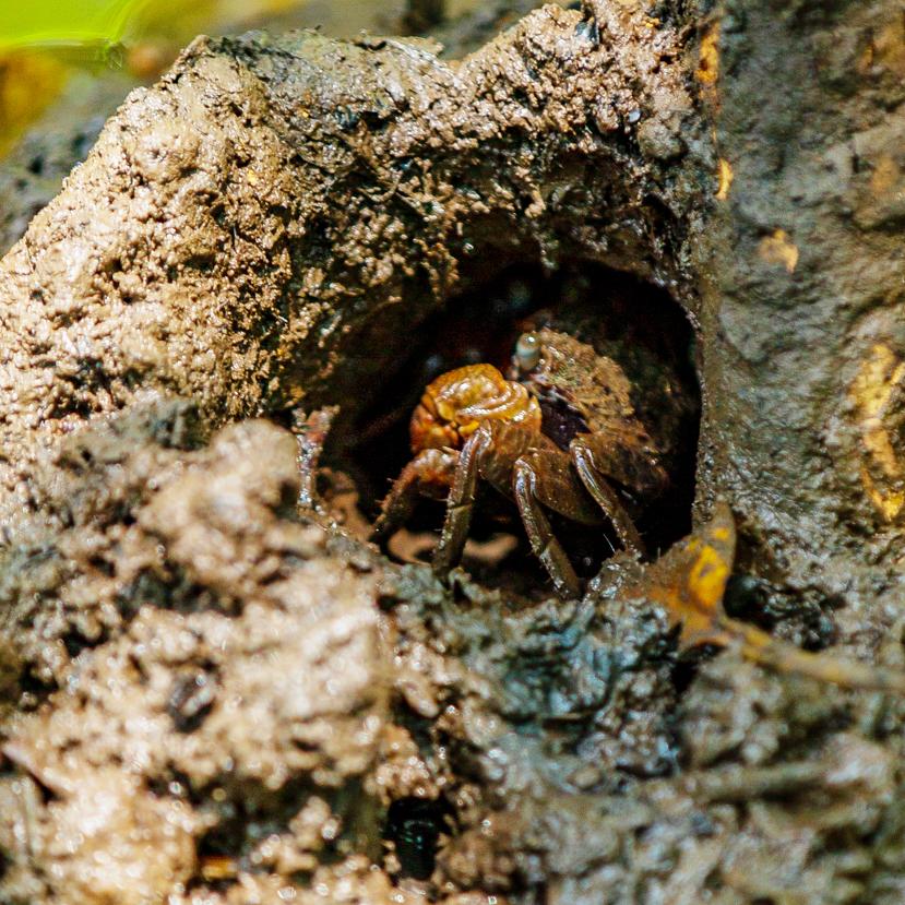 一顶顶青翠的树冠于海浪中浮荡,散发着大海的气息,滋养着海洋众多生灵。会跳的鱼、会上树的螺、钳子一大一小的蟹……能近距离的接触生活在湿地里的小精灵们。在这片红树林里,可以化身为“赶海人”。