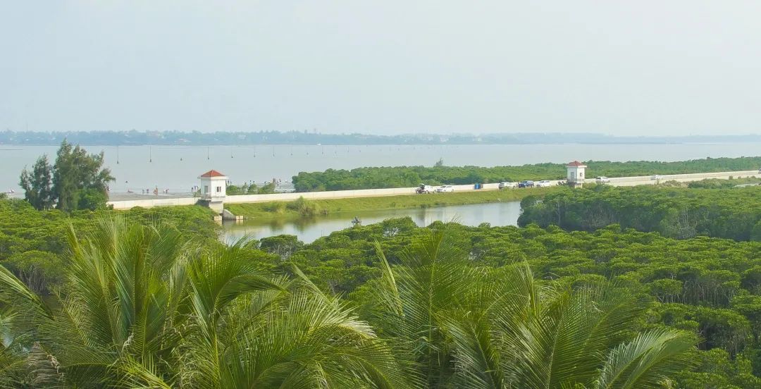 这里生长着200多亩的防风林和大片区的红树林,沿着环岛路漫步或骑行,满眼的绿意扑面而来,自然生长的红树林,人与景相依相融,不时有鸟儿在红树林起飞、降落嬉戏,别有生机,让人忍不住驻足留影,不由自主地张开双手,放空自我。