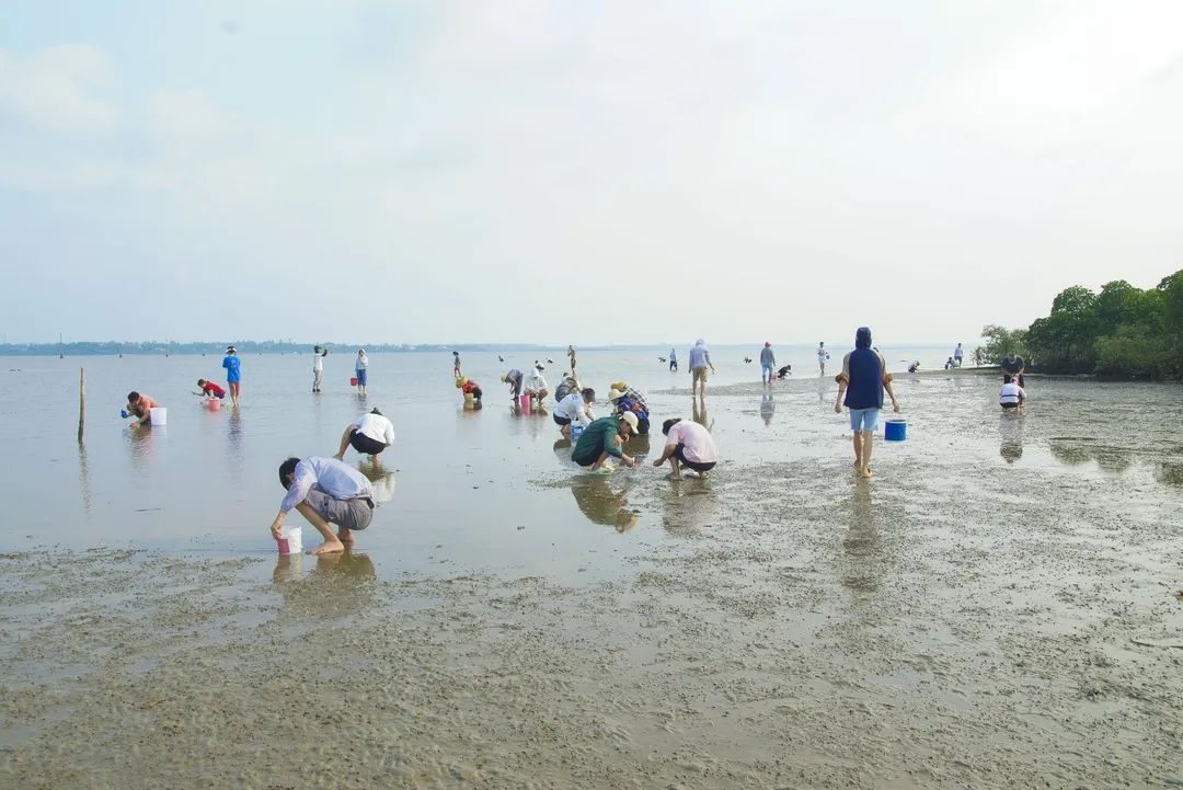 与红树林相邻的连理枝渔家乐,推出的赶海活动圈粉无数。带上的赶海工具、赶海“神器”,在连理枝渔家乐老板的带队下,在秘密赶海基地可以尽情施展手脚嗨玩!卷起裤脚,提着小桶,去探索、去捕获、去丰收,去亲近大自然,去感受自然美好的馈赠。这不仅仅是欢乐的体验,更是一场生动深刻的科普之旅。