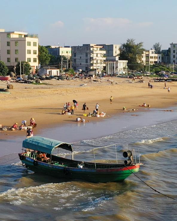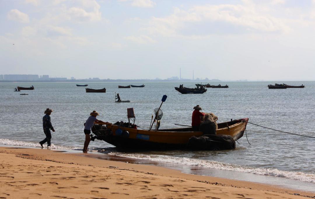 荣山寮村位于海口西海岸最西的海边,现在正值开海的季节,经过休养生息,海面上再度热闹起来,伴随着一阵阵的鸣笛,渔船竞相拔锚起航,期盼鱼虾满仓。